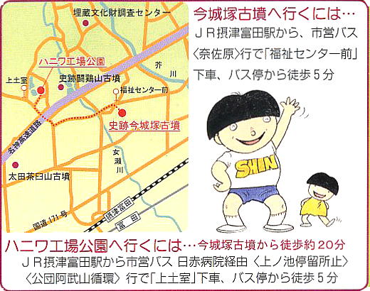 B13:10 摂津富田−−−市バス(220円)−−−土室−−−埴輪工房博物館−−−今城塚−−−闘鶏山古墳
