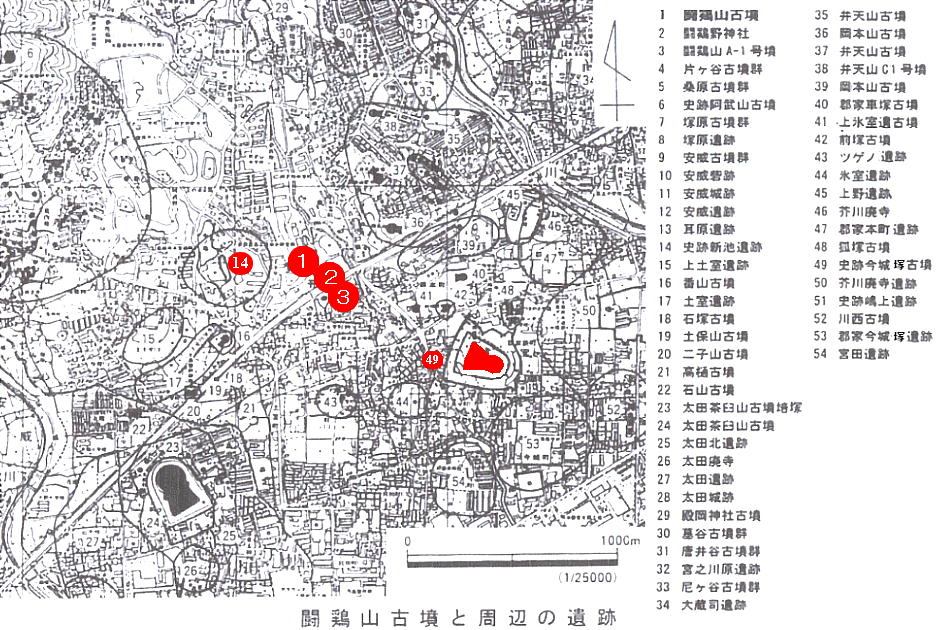西部から茨木市にかけての山裾には古墳時代の前期から中期の古墳が連なっている。