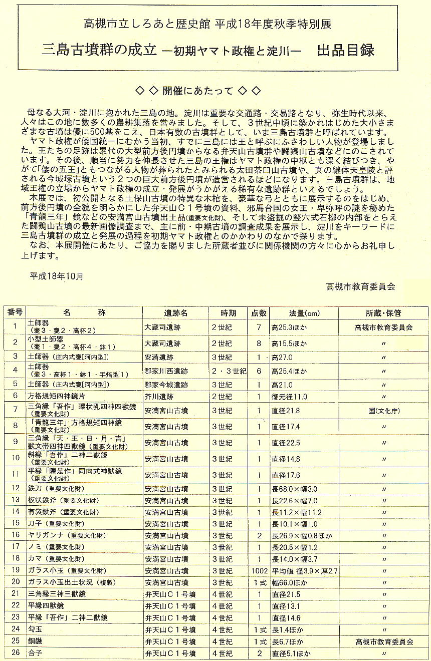 HPの高槻市コーナーに報告してあるので、そちらも併せてご覧いただけば幸いである。というわけで、解説はもう