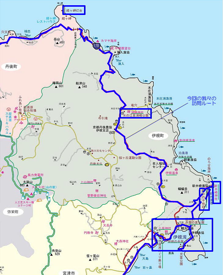 さんを訪ねて夕日が浦に泊まり、前回行けなかった丹後半島の東側もめぐるプランを立てた。これなら私の要望も家族の満足