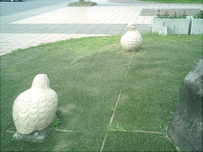 高速のSA(場所は忘れた。)にあった、「丹波篠山城」の石垣のレプリカ。隣の雷鳥はどういう意味かよくわからん。
