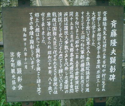 斉藤隆夫がこの町の出身だとは知らなかった。国会で口から泡を飛ばして演説する写真を見たことがある。