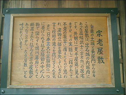 われる家老・仙石左京の屋敷跡である。現存する建物は左京と対立した造酒の子、仙石主計が騒動の後に建て替えたもの。