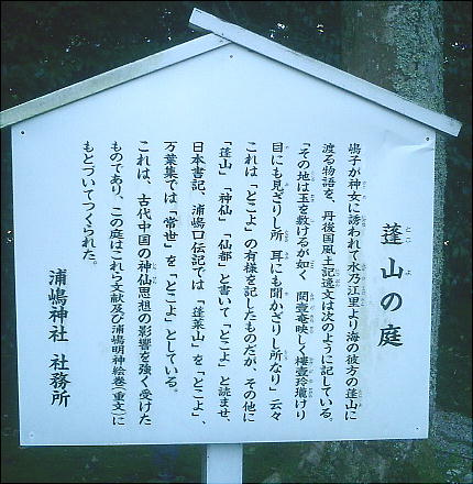 浦嶋(太郎)が訪れた所は、「蓬莱山」、「蓬莱」、「常世」、「神仙」、「仙都」である。すべて「とこよ」と読む。室