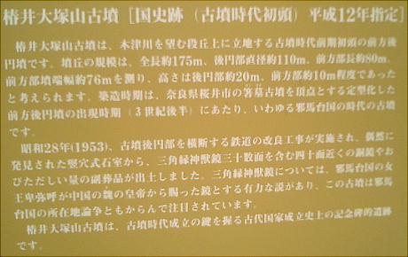 辺の道にある「黒塚古墳」から34面の三角縁神獣鏡が出土するまで、ほぼ半世紀にわたって「日本一の三角縁神獣鏡
