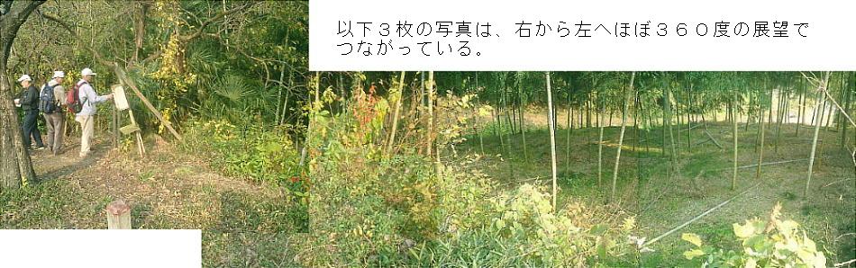 尾切断型」古墳の典型とされています。今回の調査では、この尾根を切断した個所から古墳後円部の頂上付近にかけて合