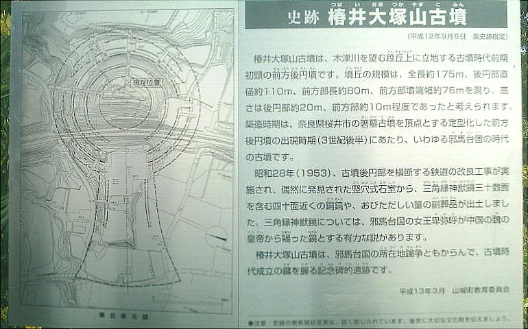 椿井大塚山古墳については、南山城に住む〇〇さんの、以下のホームページが詳しい。ここを見ればこの古墳の全貌がわ