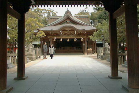 途中、この地で応神天皇を無事出産したという伝説に由来して、この二人を祭る安産信仰の神社である。安産祈願の参拝