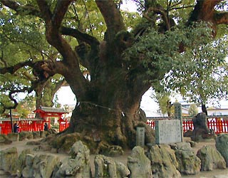 樟の巨木に古の宇美が見える。クスの木の大木が沢山ある。「湯蓋の森」といい、樹齢は2000年以上であり、他に