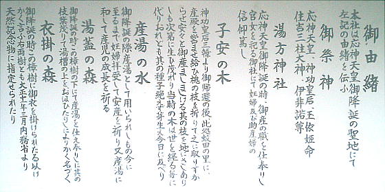 譚に記されているような史実があったのだろうと思う。そして応神天皇も、ほんとにここで生まれた人物だったかもしれ