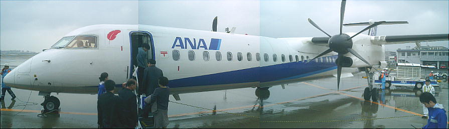 福岡からの帰りはまたプロペラ機だった。この機はジェツト機の半分くらいの高度を飛ぶので、昼間に乗ると空からの景
