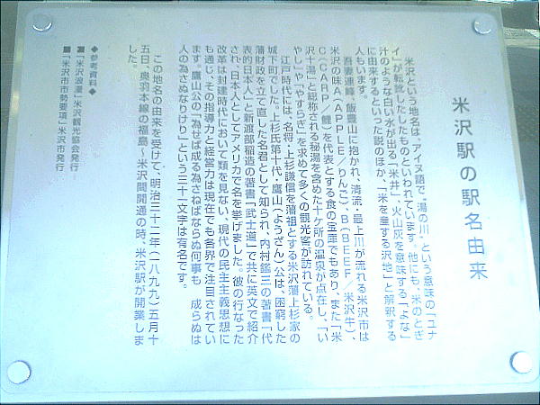 JR米沢駅。列車が福島で仙台方面と分かれたとたん山の中へ入り、米沢の5分ほど前まで山の中ばかりだったので、果たして