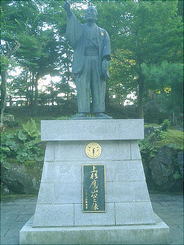 の設計になるもの。上杉謙信は上杉家の藩祖。言わずとしれた戦国の雄で、毘沙門天を信仰した仁義厚い武将。ライバル武田信玄