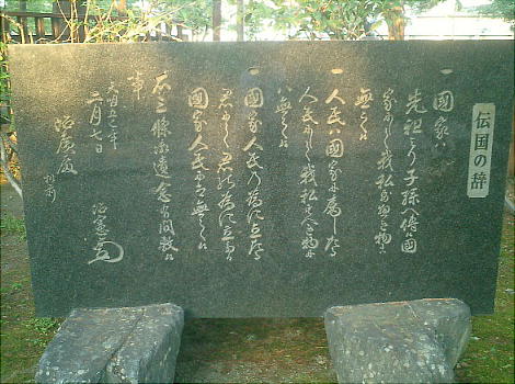 伝国の辞は、上杉家の明治の版籍奉還に至るまで、代々の家督相続時に相続者に家訓として伝承された。