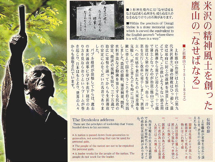 成らぬは人の為さぬなりけり。」(鷹山についての詳細は、「米沢市上杉博物館」のコーナー参照。)