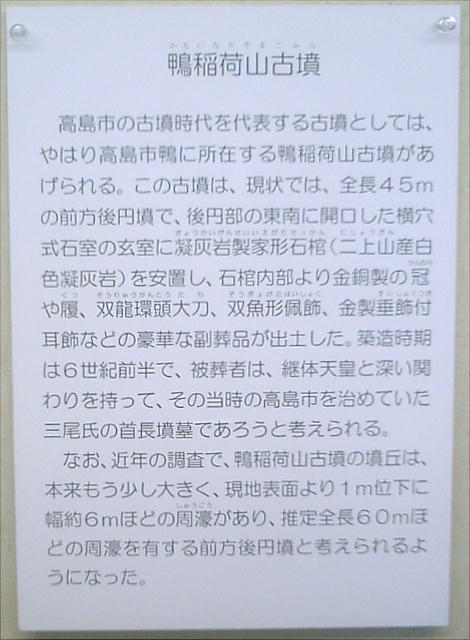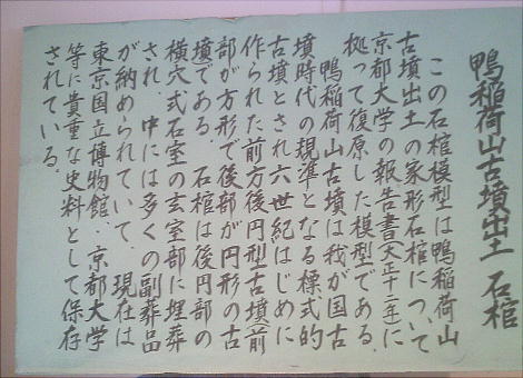 ているが、しかし残念なことに鴨稲荷山古墳の出土遺物は現在、東京国立博物館と京都大学総合博物館の2館に収奪されている。