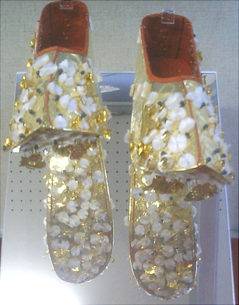 上右を見ると、靴底にも「揺」(よう:ユラユラ揺れる飾り)がついているので、これは履くことの出来ない、完璧な装飾品であ