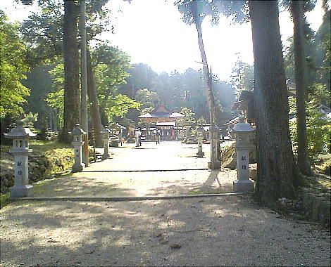 高い木立の参道は明るく、おおらかな雰囲気で、高島を代表する神社のひとつにふさわしい佇まい。三尾山の拝戸古墳から続く斜