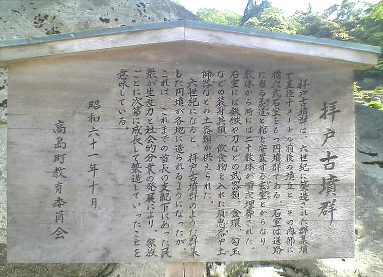 左手には大きな石が転がっていて、立派な池庭がある。案内に「拝戸古墳群」とあるが、どこが古墳群なのかはわからなかった。