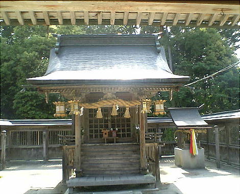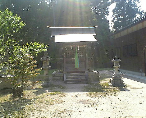拝殿の後方には、垣に囲まれた本殿。垣の右横には、境内社の八幡社。垣の中の本殿の横には、小さな祠がある。