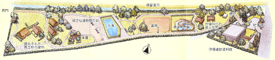 らかになっていない。とくに、弥生時代後期の集落を取り囲む三重の環濠や、古墳時代の集落跡、奈良時代の役所風建物跡と河