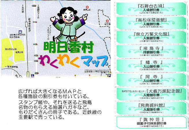 散策路: 散策路については、当日「飛鳥パスポート」(100円)と地図をお渡しします。