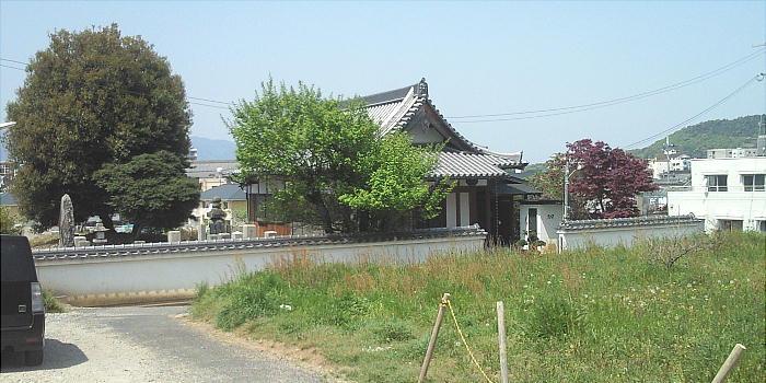 丘陵の西斜面に位置し、本堂の左側は小規模の墓地になっていて、先の大戦 で戦死した兵隊たちの墓標が並ぶ。