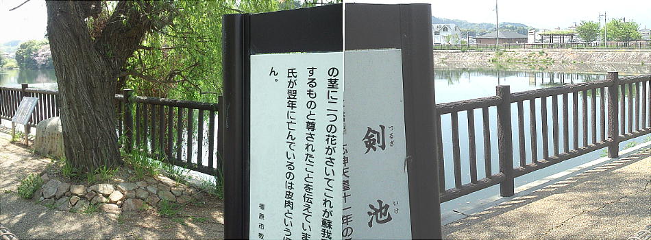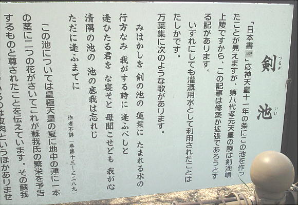 ことが出来る。第15代応神(おうじん)天皇の時、軽(かる)池、鹿垣(かのかき)池、廐坂(うまやさか)池と共に「剣池」