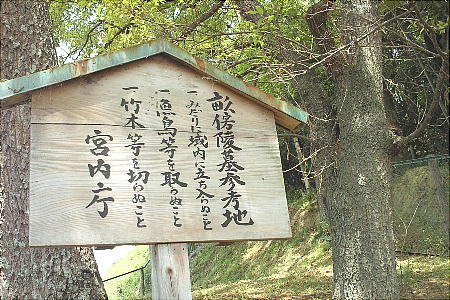 古事記に第8代孝元(こうげん)天皇の陵は、剣の池の岡の上にある。と記され、池の南東から孝元天皇の「剣池嶋上陵」へ行く