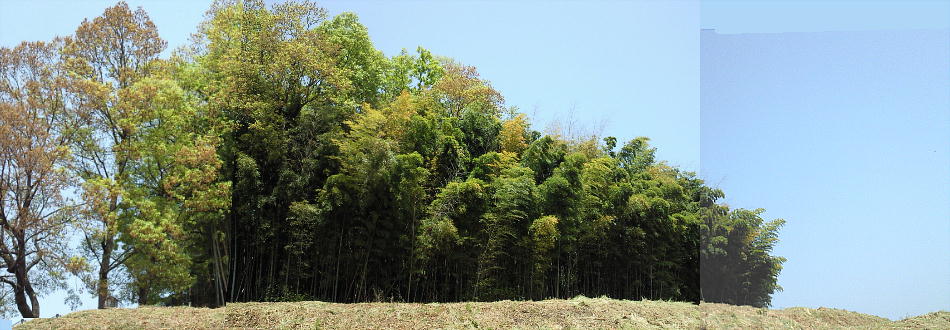 上に石棺があると説明にあるので見に行こうとしたが、細い竹の切り株がアチコチにあって危険だったので、墳頂までは行けなかった。