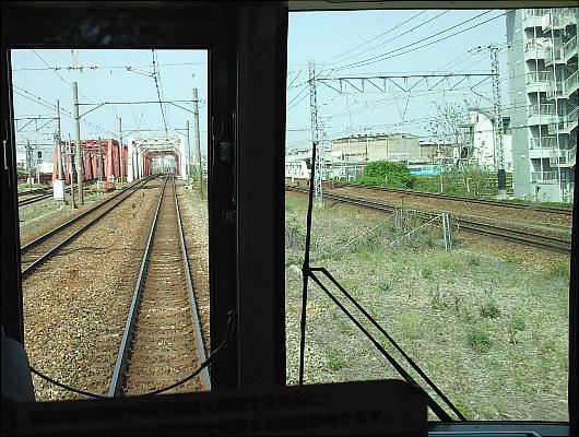 帰りのJR東海道線、最前車両の窓から見た淀川の鉄橋。
