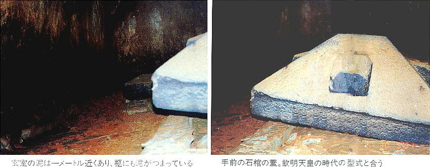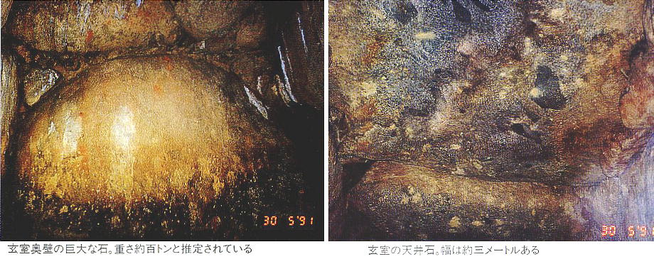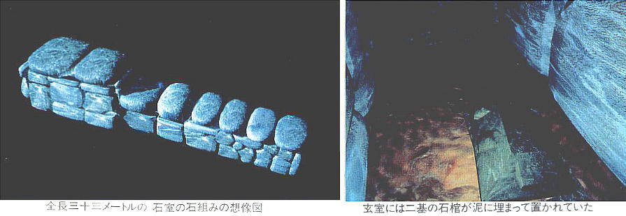 石舞台古墳に匹敵する2つの横穴式石室が発見され、東側の石室は幅3m、長さ6.5mだが、西側の石室は幅2.5m、長さ5