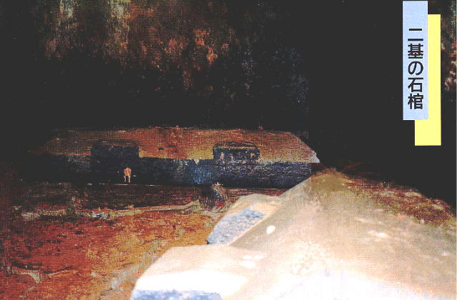 持ち、2基の家形石棺が共に四注造の屋根を付け、内面に漆を施し、北側の石棺は四隅に柱状の彫刻を、南側の石棺は上下端に帯