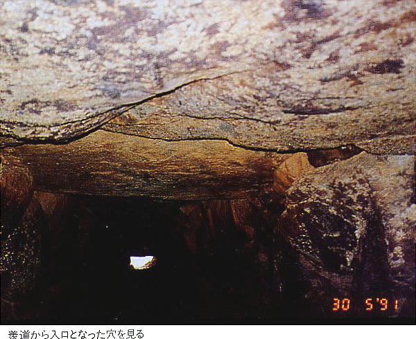 数年前、近所のサラリーマンが、崩れた坑から石室内へ入り、内部を写真に撮って話題になった。