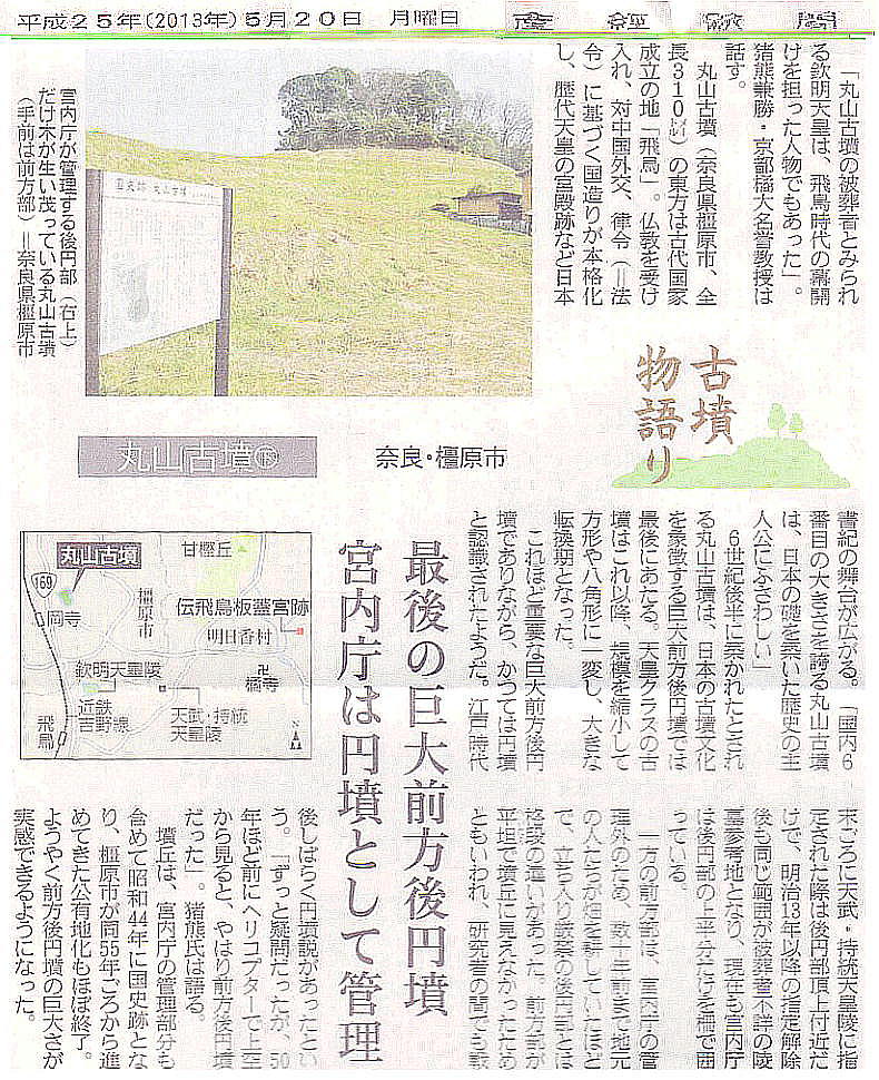 丸山古墳の東方300mに「植山古墳」があり、数年前発掘調査された。推古天皇が、息子の田村皇子とともに最初に葬られた墓