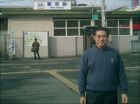 急行「河内長野行き」に乗って20分ほどで「喜志駅」到着。上右は新会員の渡邊さん。仏様を造っている「大仏師」さんだ。