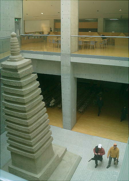 大吹き抜け塔の前で昼食。安藤忠雄の造ったものはどこへいってもコンクリートむき出しだ。
