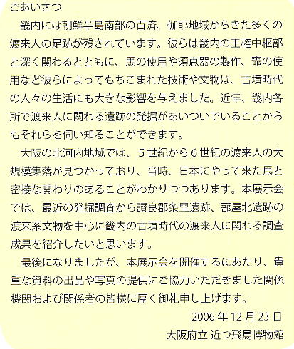 講演会の後、1時間しかなかったが大急ぎで「地域展」を見る。展示場は渡来人の足跡でいっぱいだった。