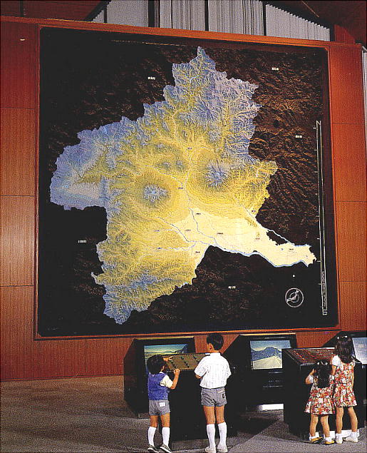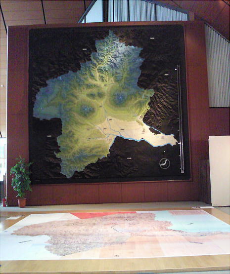 エントランスを入ると学習ホールがあり、壁画に垂直に取り付けた、縦・横6mの群馬県立体模型地図がある。縮尺2万分の