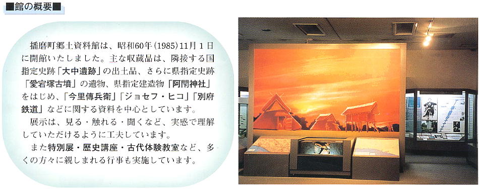 「別府鉄道」などに関する資料を中心としている。入場無料で、播磨町に関する歴史・文化を伝えており、年間5万人ほどの来館