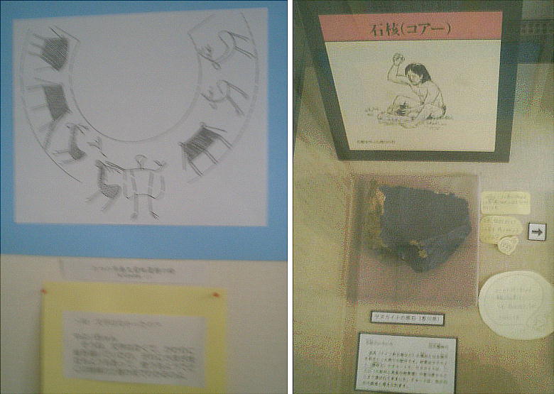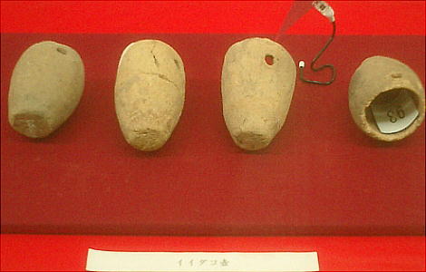 かっては大中遺跡は海に面していたと推定され、これはそのムラを復元したもの。イイダコは昔から美味だったとみえる。