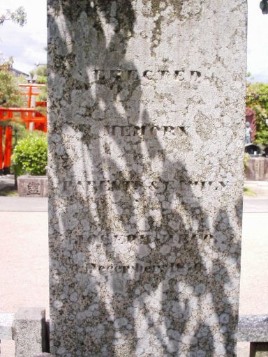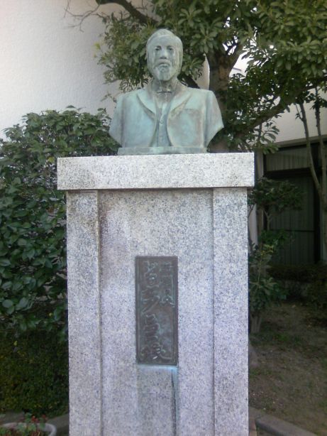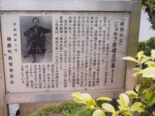 播磨町の公民館の前のヒコの銅像です。右、下左の写真は、播磨町の蓮花寺にあるヒコが両親のために作った墓石ですが、ローマ字、