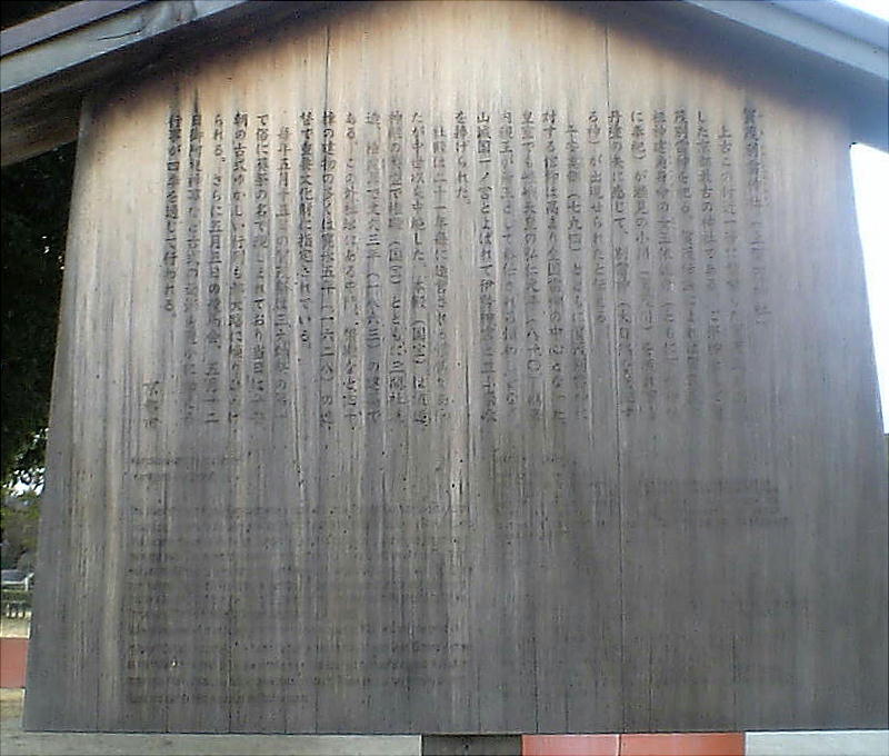 別雷神」を氏神として祀ったのが起こりで、天武7( 678)年天武天皇によって現在の社殿の基が造営したといわれている。創建に
