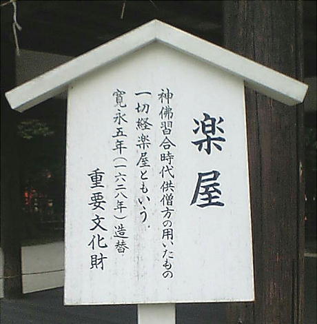 用されている。現在の建物は寛永5年(1628年)に造り替えられたもの。「舞殿」、「土屋」共に重要文化財に指定されている。