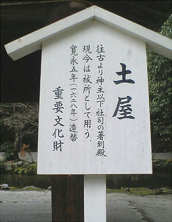 「舞殿」に近接して右手に「土屋」が建てられている。「土屋」は神主以下社司の著到殿として用いられていたが、今は祓所として使