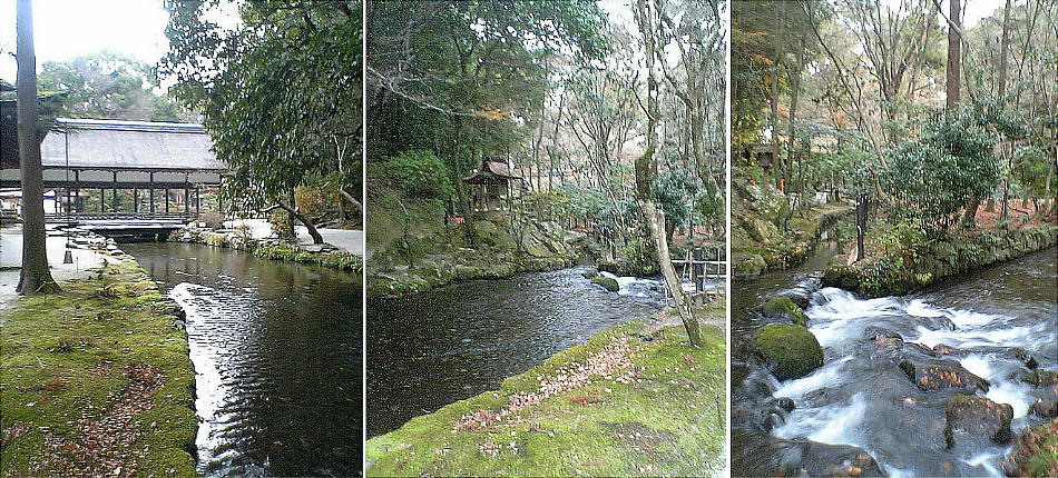 境内の中を北から南に、「舞殿」の下をくぐって流れている小川が「奈良(楢)の小川」である。小倉百人一首に入っている藤原