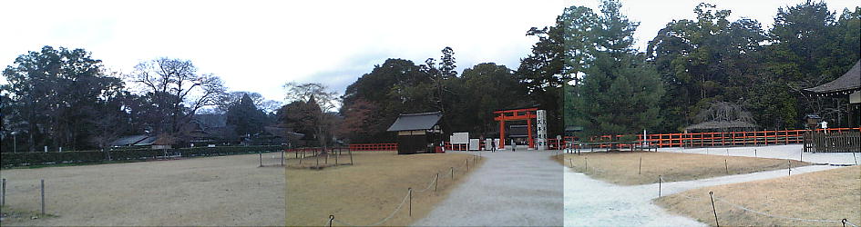 けた。一の鳥居から二の鳥居まで一面に芝生がひかれ、社殿約60棟が並ぶ。式内社。賀茂御祖神社(下鴨神社)とともに平安時代