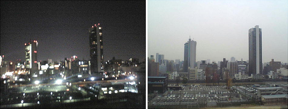 私の会社のベランダから見た、中之島の南方(上)と西方(下)。