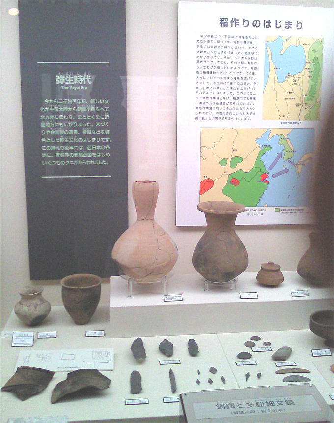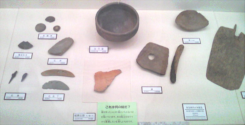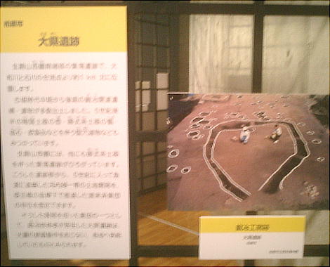 ここからは、弥生時代中期〜後期の遺構から鏡の直径21.7cm(一部欠損)の多鈕細文鏡(たちゅうさいもんきょう)と呼