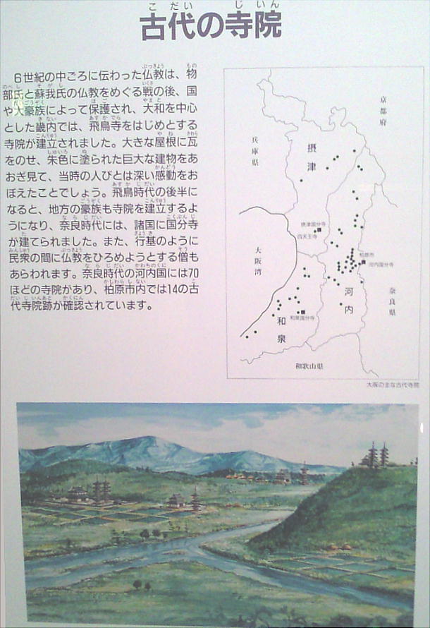 柏原市は古くから歴史の舞台となった河内平野の東南部に位置しているが、旧石器時代から中世までの時代別に展示された考古資料や